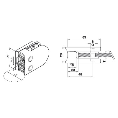 Notre catalogue : Gamme Inox Poli > Pinces à tôle > Fixation sur tube Ø 48,3